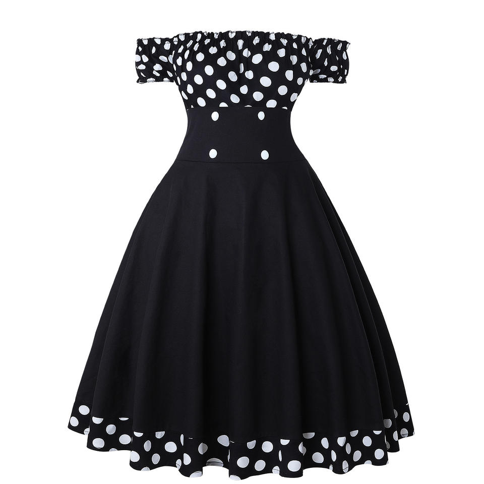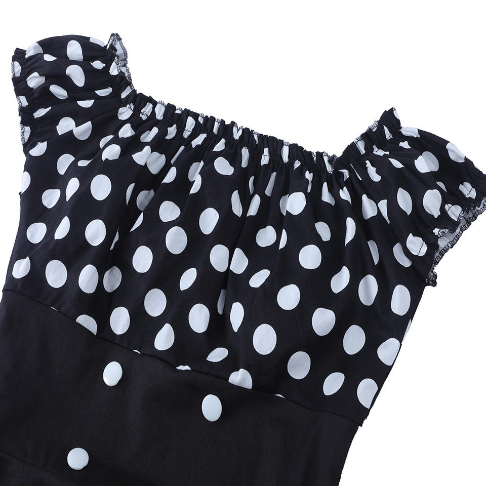Robe trapèze boutonnée à pois pour femme, style pin-up, vintage rockabilly, épaules dénudées, pour l'été, robes de soirée skater, sexy, Vestidos