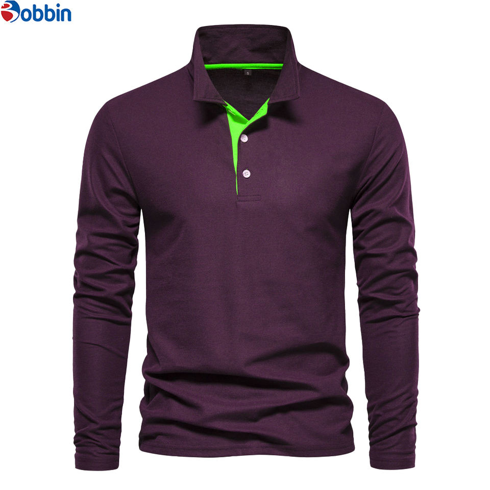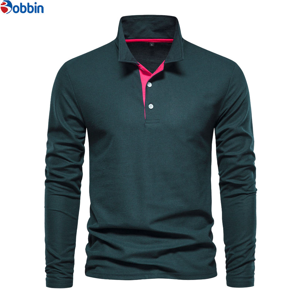 Polo brodé à manches longues en coton respirant avec col à revers, boutonnage frontal, style formel et mode, idéal pour le travail