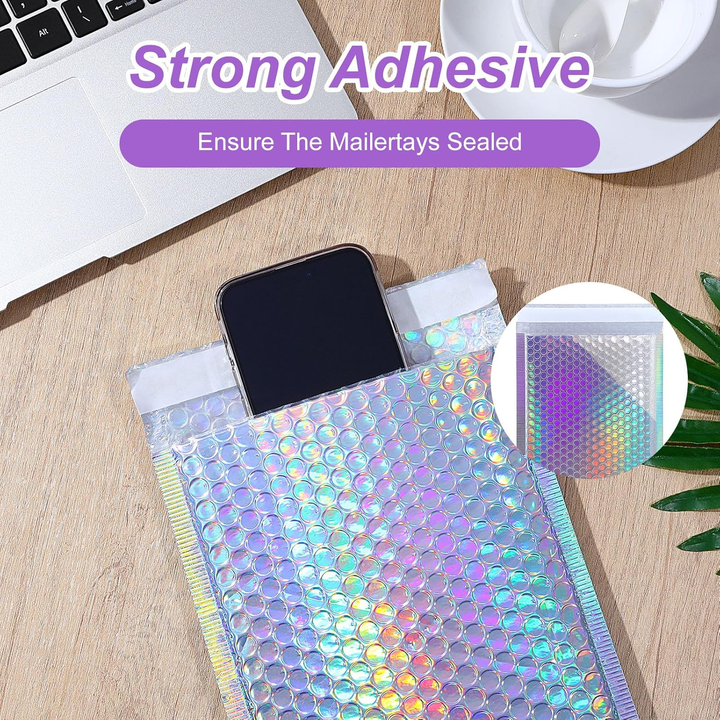 Sacs enveloppes à bulles laser brillants renforcés résistants aux chocs imperméables pour vêtements et cadeaux, emballage personnalisé, livraison express