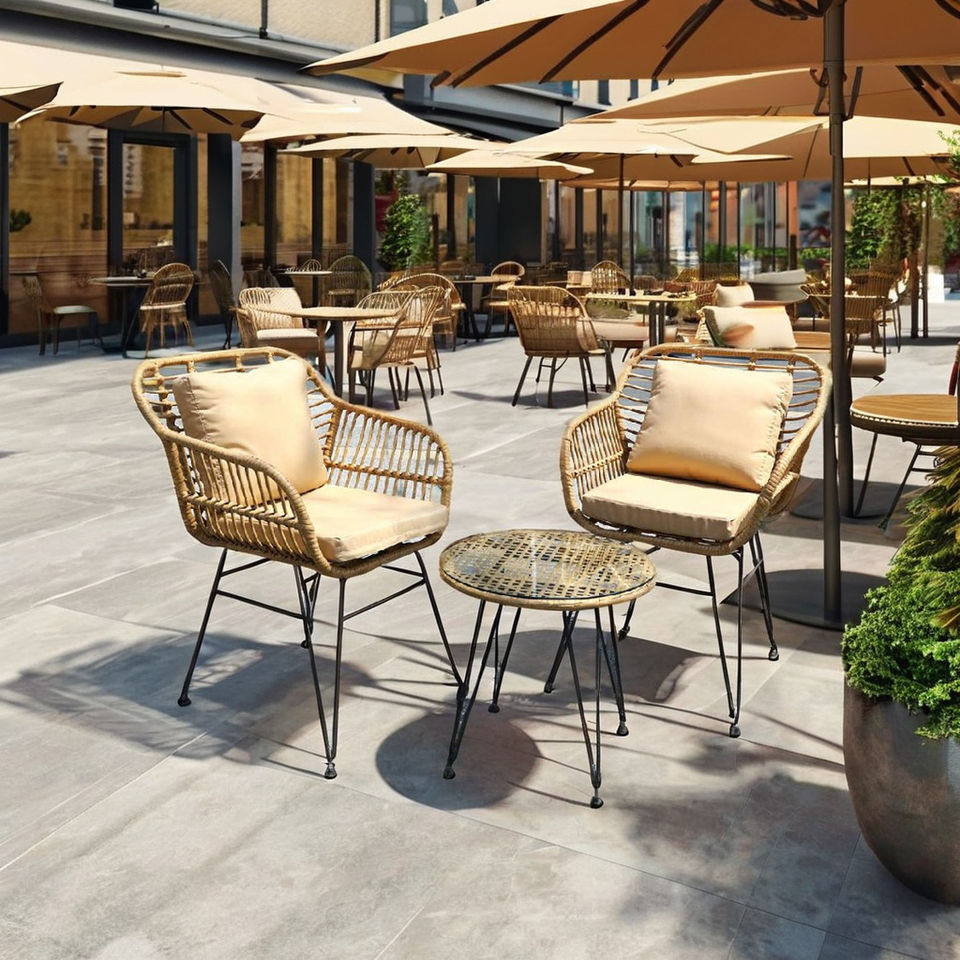 Meubles en poly rotin Table basse en rotin PE Table Wane et ensemble de 2 chaises