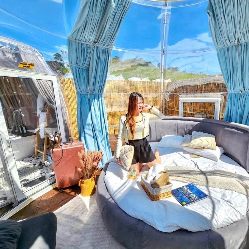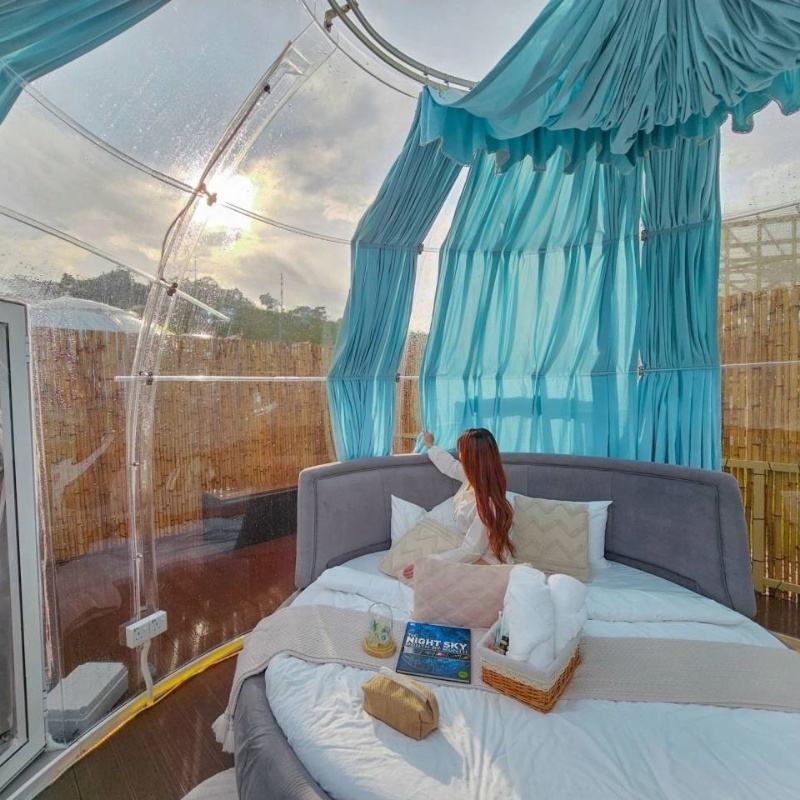 Tente dôme en polycarbonate Maison à bulles transparente pliable Maison dôme préfabriquée pour la location en extérieur