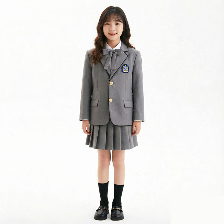Ensemble scolaire en polyester et coton, 4 pièces, style anglais, gris, pour garçons et filles