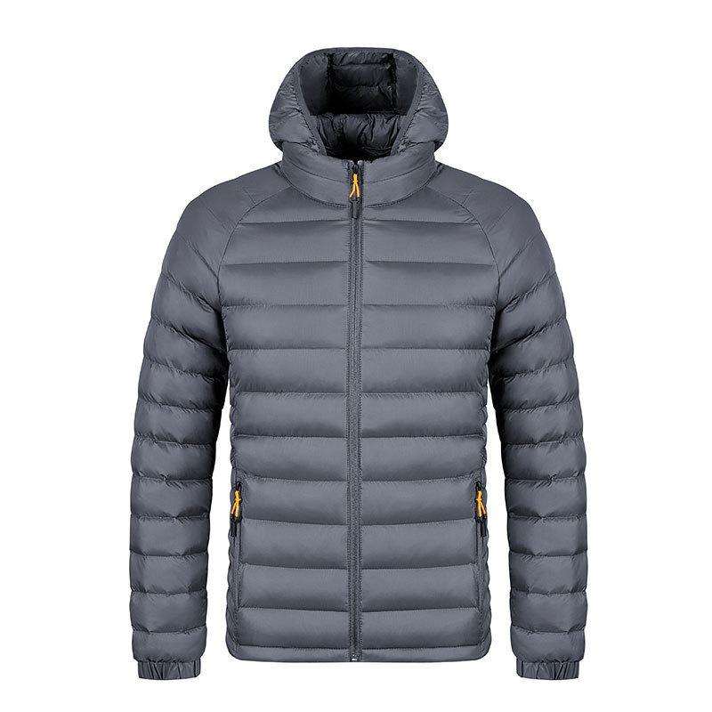 Doudoune d'hiver matelassée pour homme en toile polyester/coton, coupe courte, avec fermeture éclair, surface brillante, épaisse, coupe-vent, à capuche