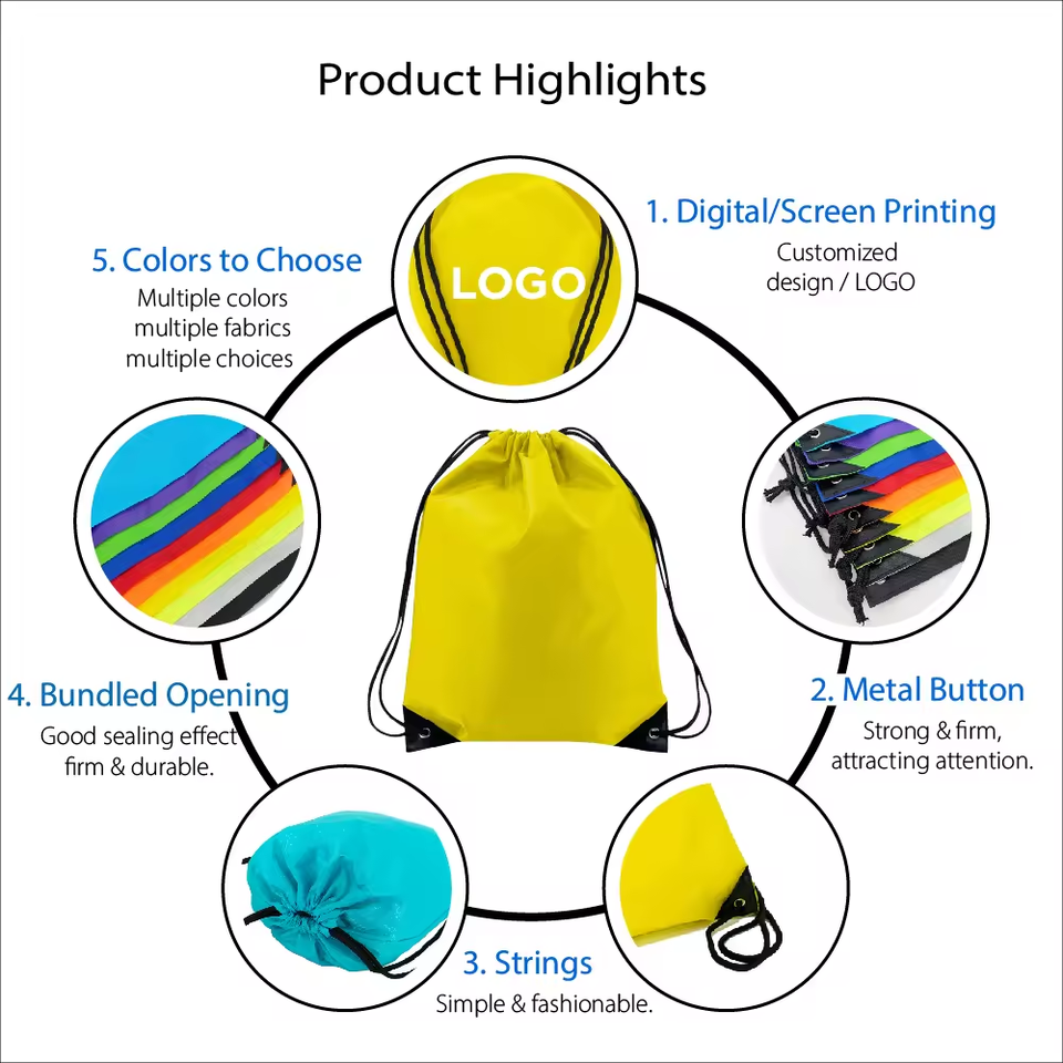 Sac à dos à cordon en polyester pour marathon, gym, voyage, sport, avec logo personnalisé, sac à dos cadeau en polyester 210D
