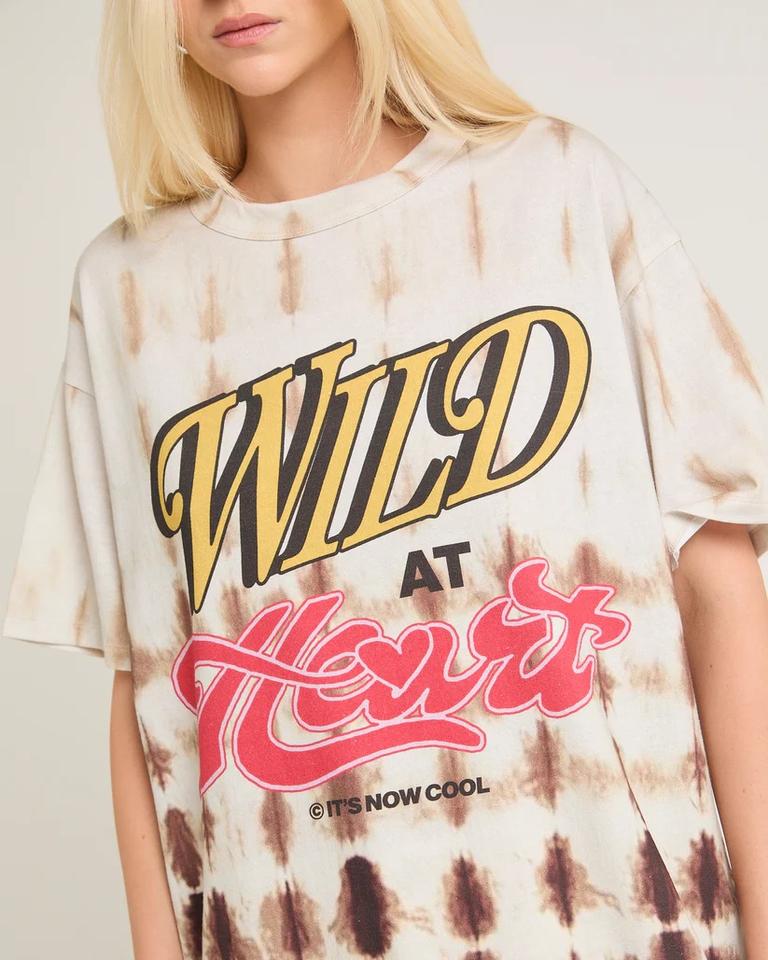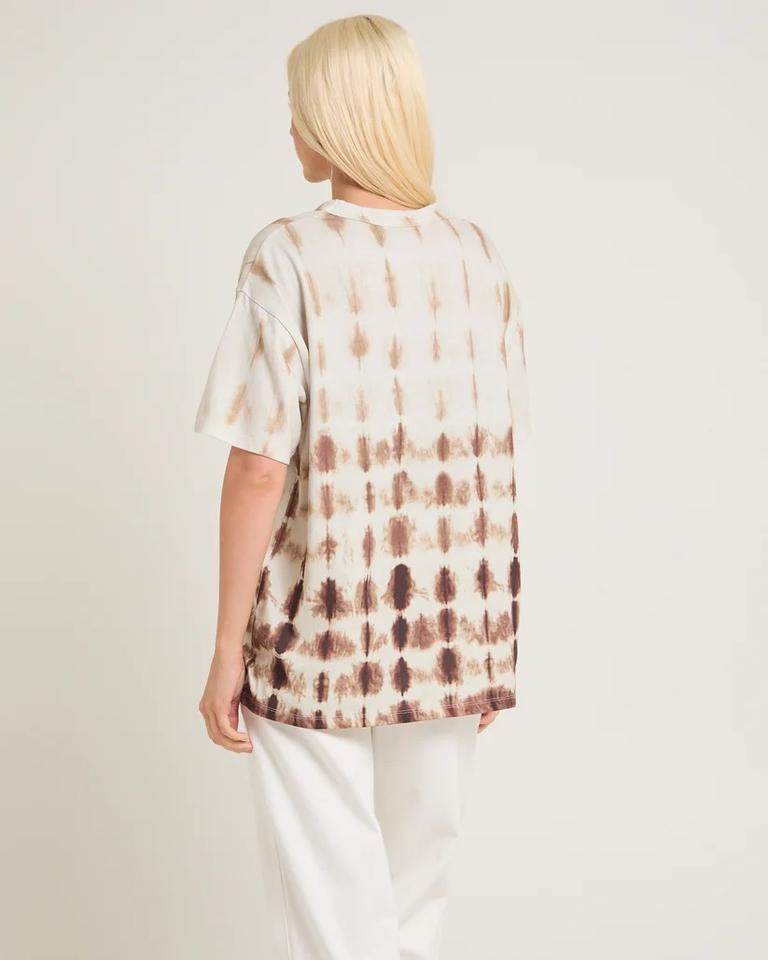 Polyester Fabrication Oversized Summer Streetwear T-shirt Rib Neckband Short Sleeves Placement Print Brown Beige Tie-dye Pattern