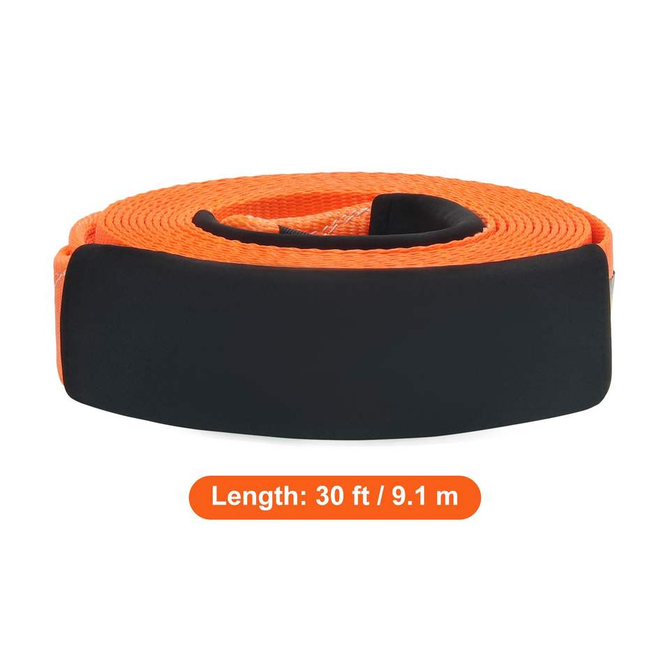 Sangle de récupération robuste en polyester pour treuil, 3 po x 30 pi, avec boucle triple renforcée, 2 crochets de remorquage, MBS-36 000 Lbs