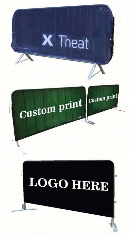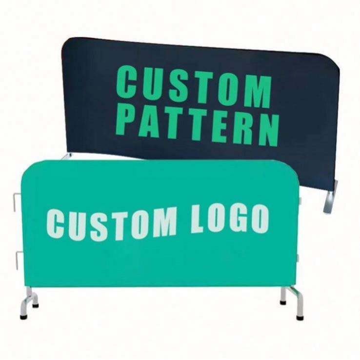 Barrière de contrôle d'accès en tissu tricoté polyester, résistante aux intempéries, portable, taille personnalisée, couvertures de barricade pour événements en extérieur
