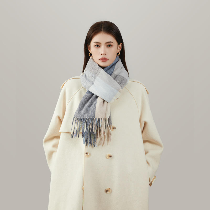 Écharpe longue en polyester à carreaux pour l'hiver, protection solaire, châle épaissi pour homme