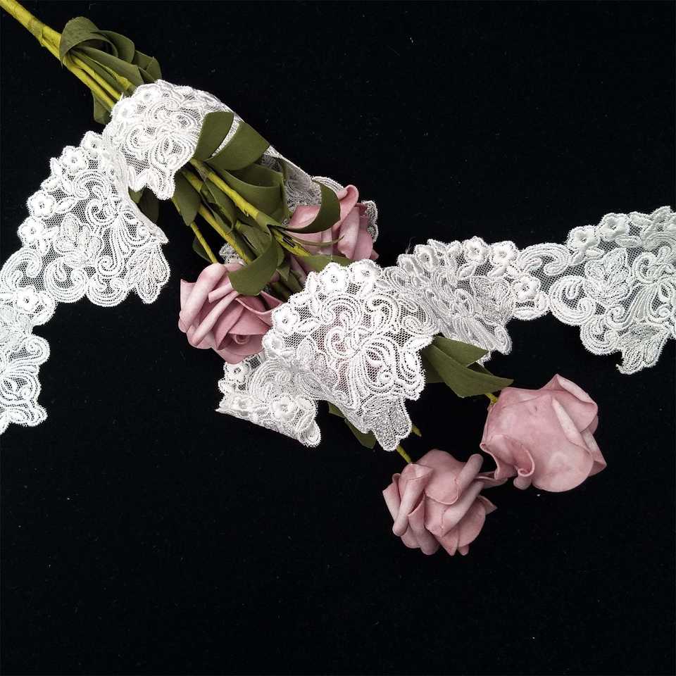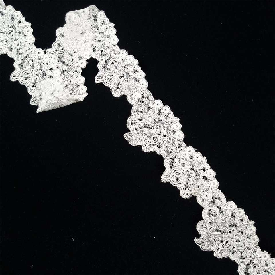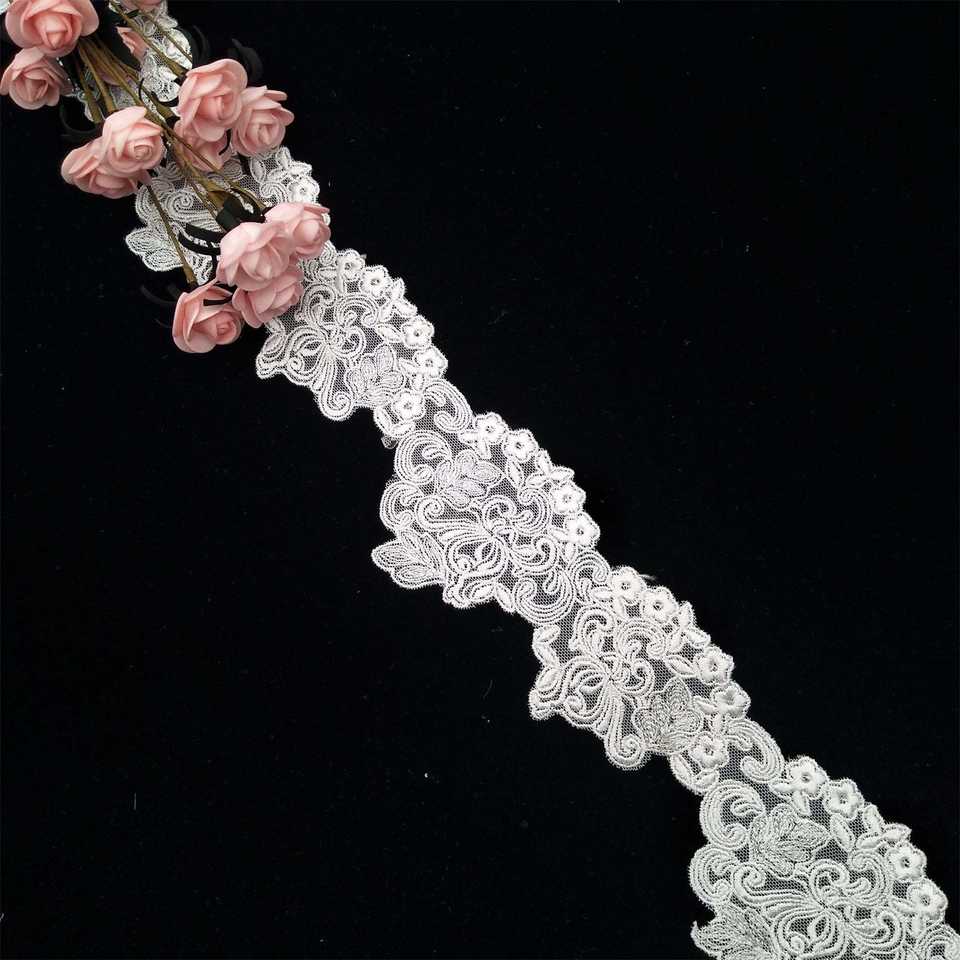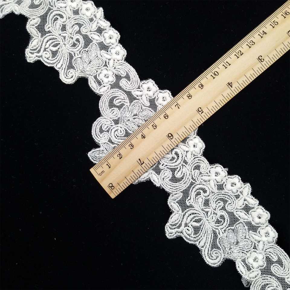 Polyester Mesh Embroidery Lace Trim Floral Embroidered White Dress Border Fabric Custom Width Organza Elastic Clothing Bags LACE