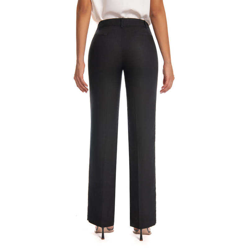 Pantalon de travail pour femme Jenna Rose, confortable, en polyester, taille mi-haute, extensible, coupe droite, avec poches, pour le bureau, les voyages et le quotidien