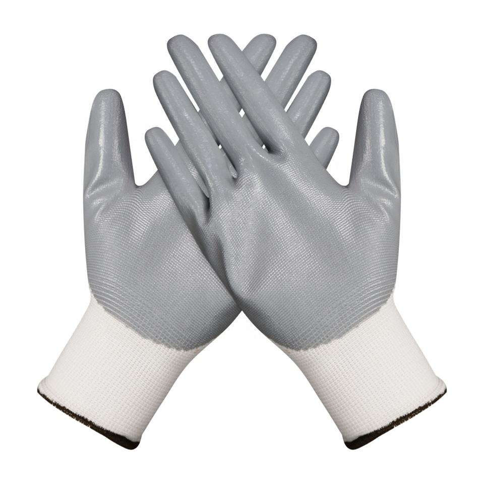 Gants tricotés élastiques en polyester/nylon + NBR, anti-choc, sans poudre, sans silicone, avec paume lisse micro-sableuse légère