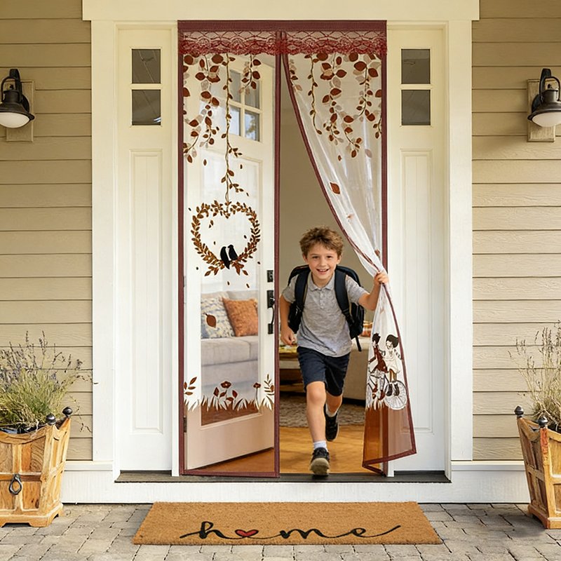 Rideau de porte anti-moustiques magnétique imprimé en polyester, auto-fermant, sans perçage, fourni par le fabricant