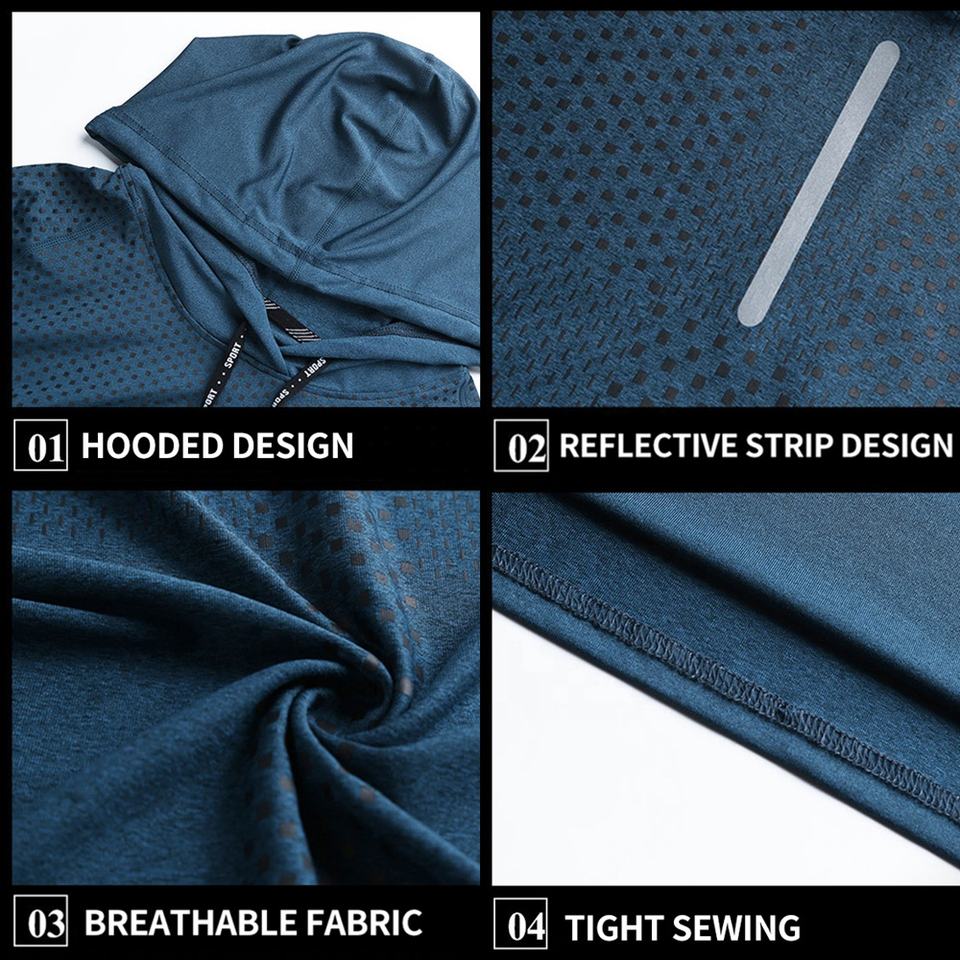 Polyester séchage rapide à manches longues palangre Gym t-shirt avec capuche Sublimation Fitness entraînement course sweats à capuche à capuche t-shirts