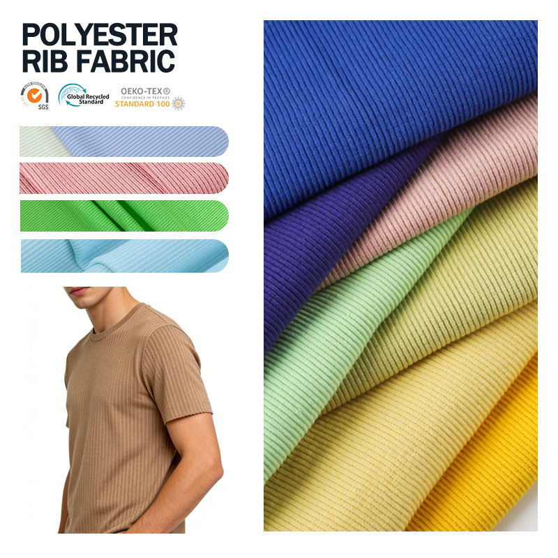 Tissu côtelé en polyester 3x3, tricotage côtelé, structure durable et stable, matériau de qualité supérieure pour la confection de vêtements