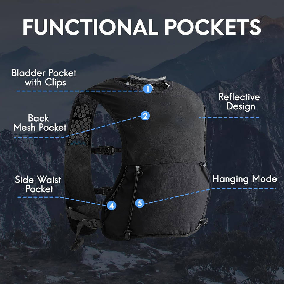 Gilet d'hydratation de course en polyester 5L léger unisexe pour trail running