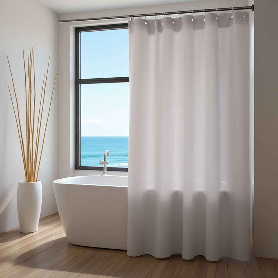Rideau de douche en polyester 240x200 cm gris clair résistant à l'eau pour salle de bain