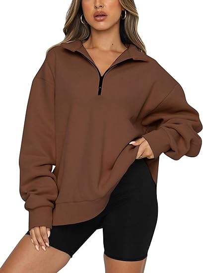 Polyester Sweat Goutte D'épaule Manches Longues Col Quart 1/4 Fermeture Éclair Pull À Capuche