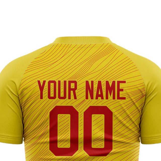 Maillot de football à manches courtes en polyester, personnalisable avec nom et numéro d'équipe, imprimé par sublimation, antibactérien et à séchage rapide