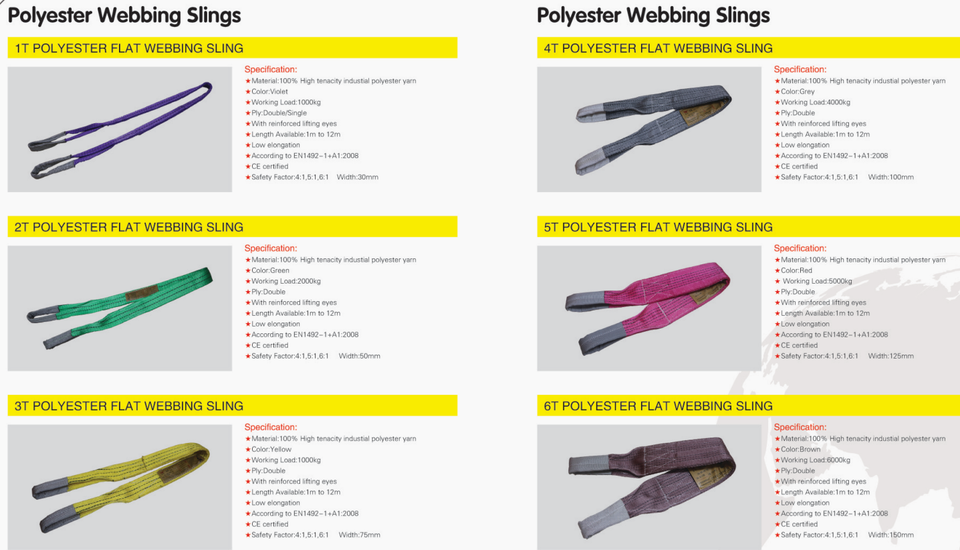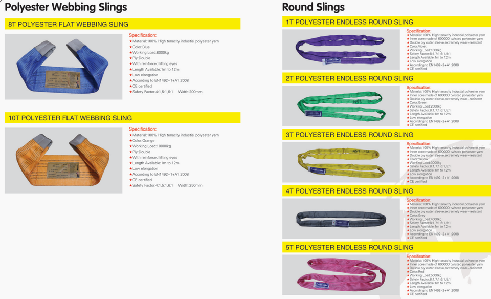 Sangles de levage en polyester, sangles rondes pour le levage de 1t à 50t, sangles de levage en toile, sangles plates colorées