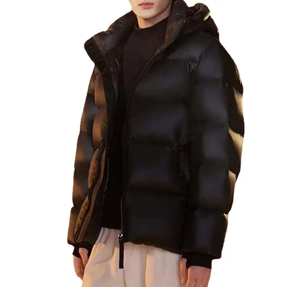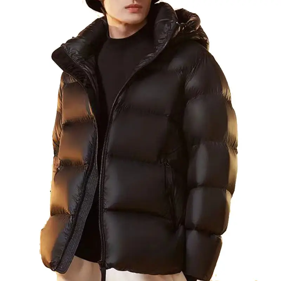 Polyester hiver à capuche bulle doudoune pour hommes extérieur chaud Quilting manteau noir grande taille doudounes