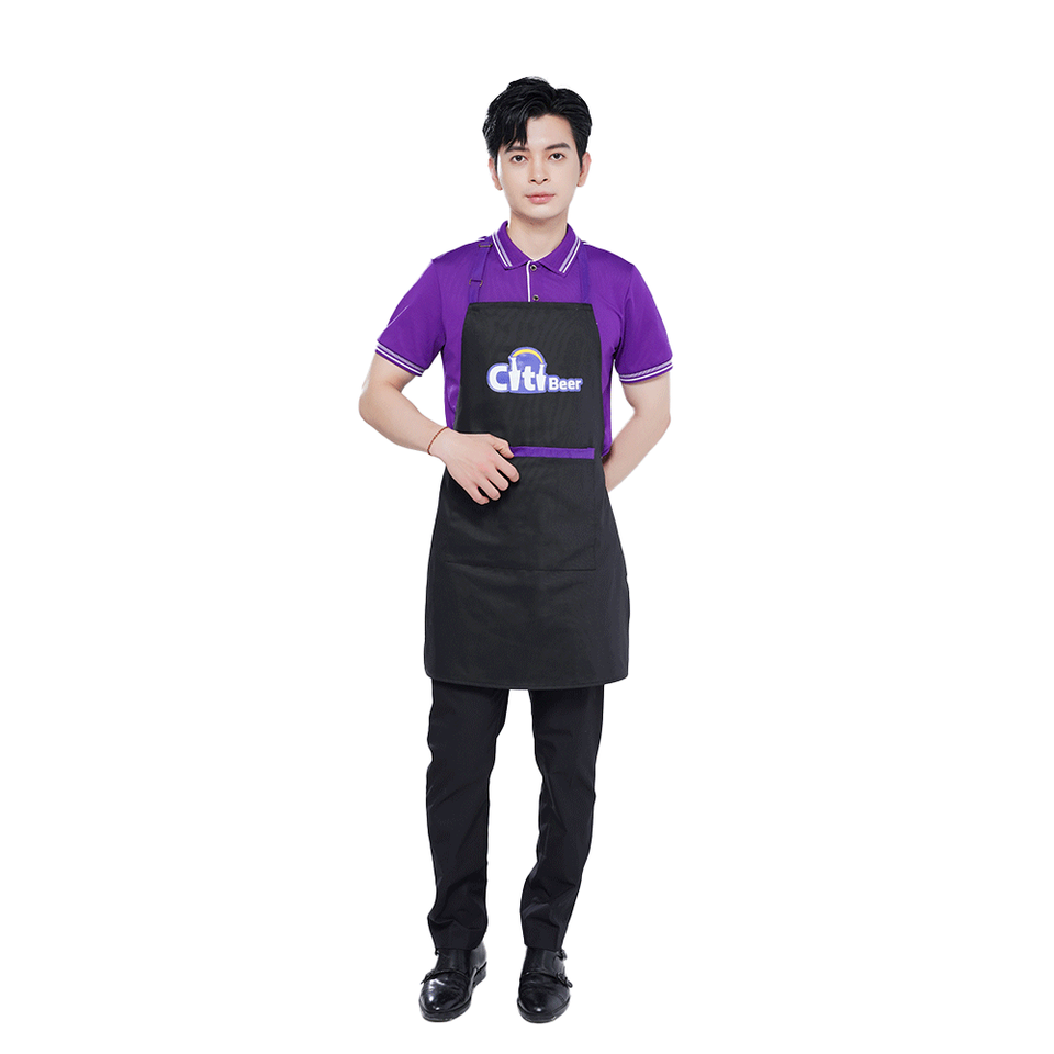 Ensemble uniforme personnalisable en polyester tissé pour café, restaurant, boulangerie – Polo et tablier unisexe – Tenue professionnelle pour le personnel