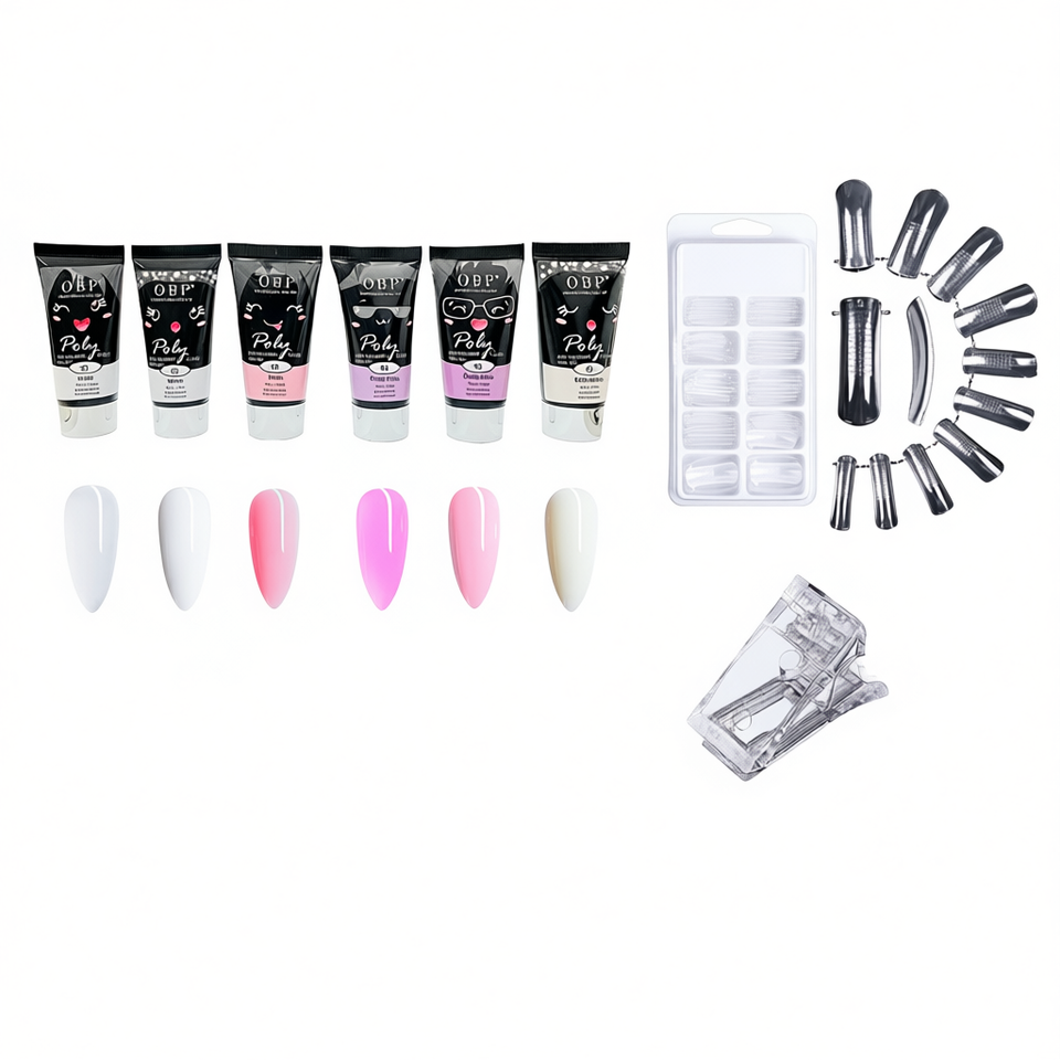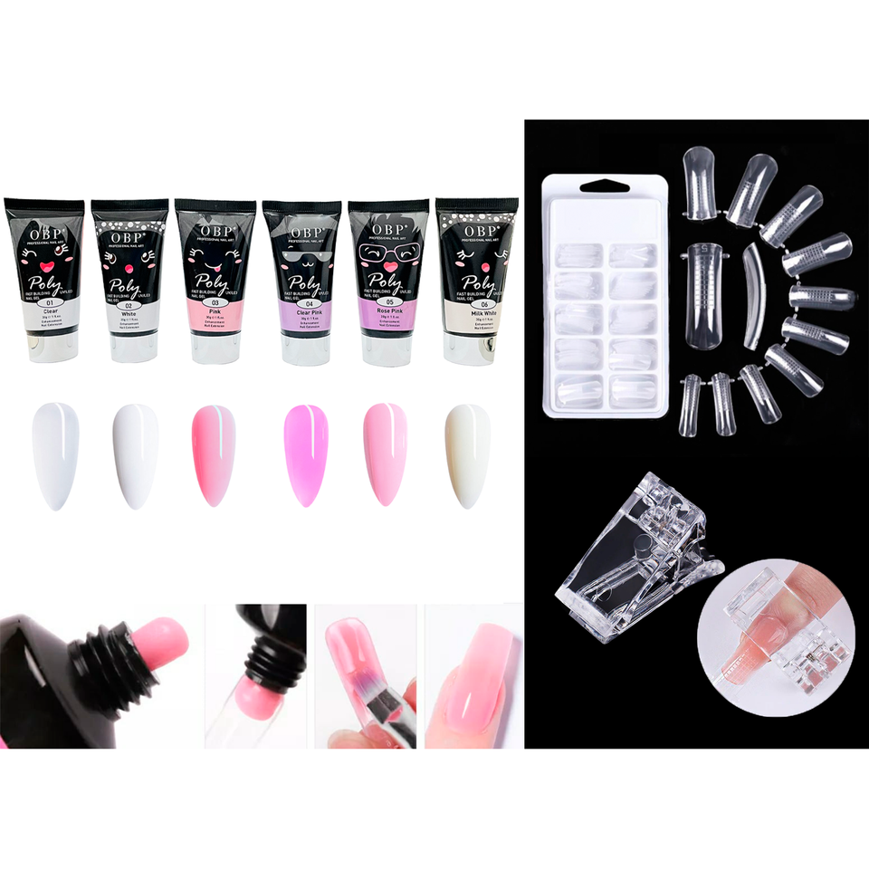 Kit Polygel 6 pièces avec 100 embouts doubles et pinces pour fournitures d'onglerie