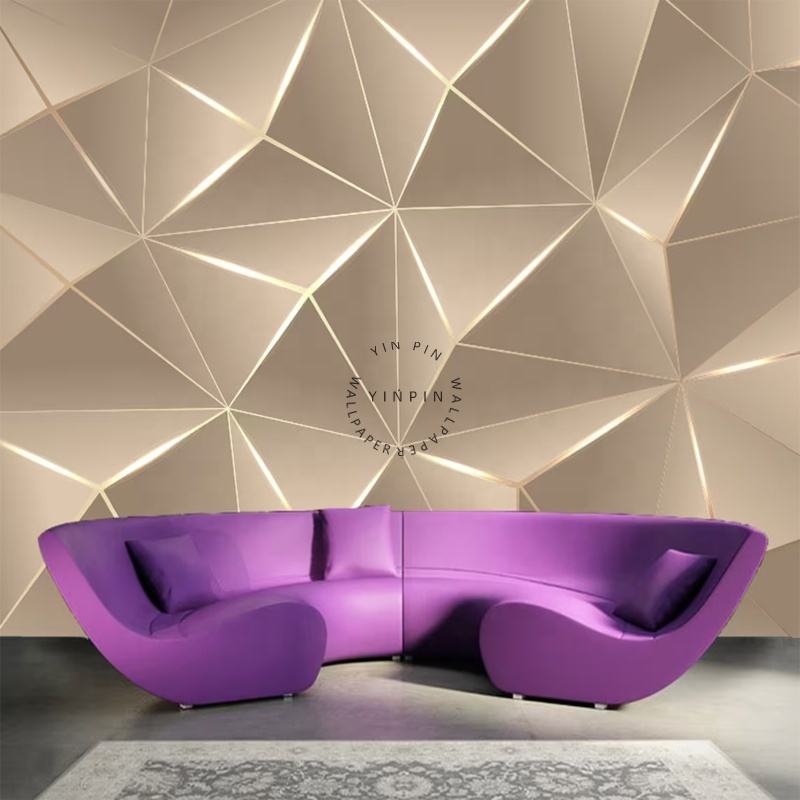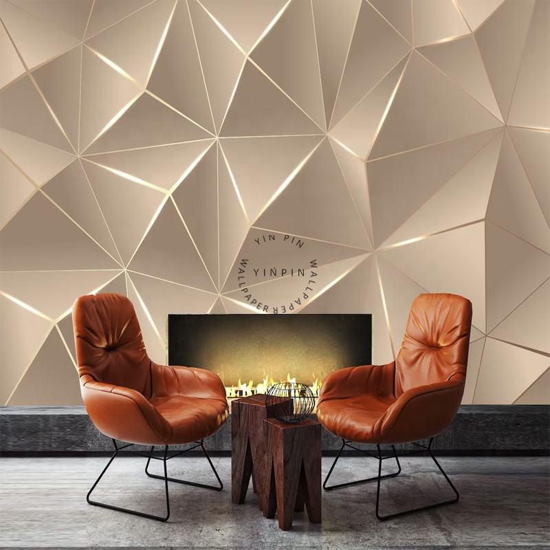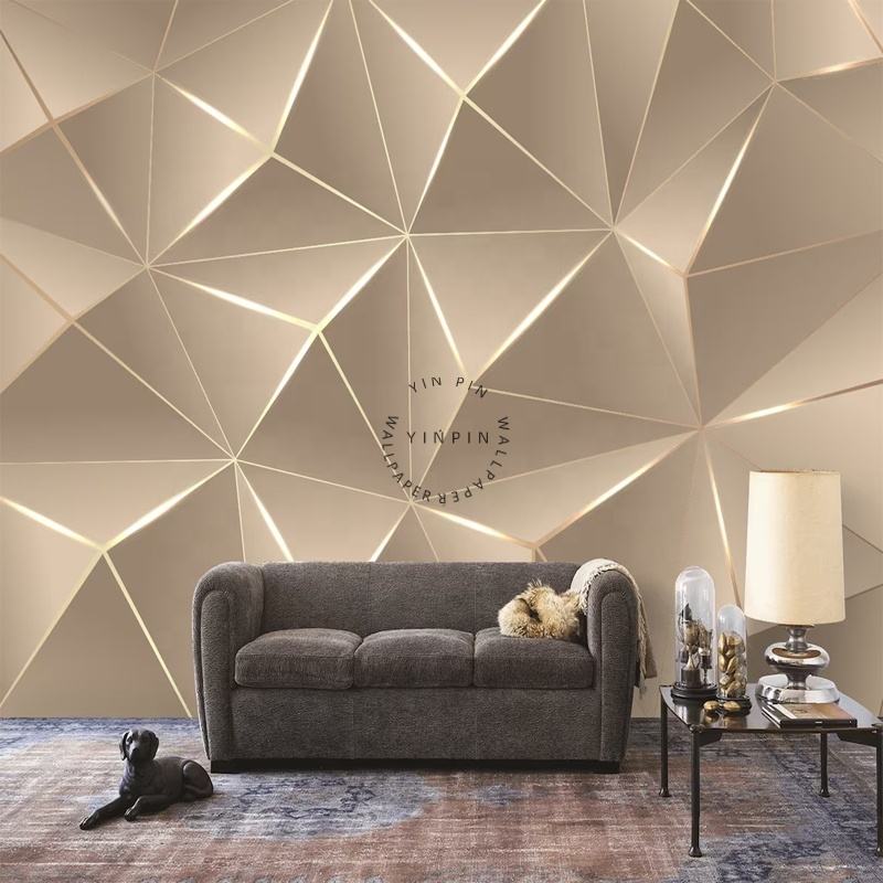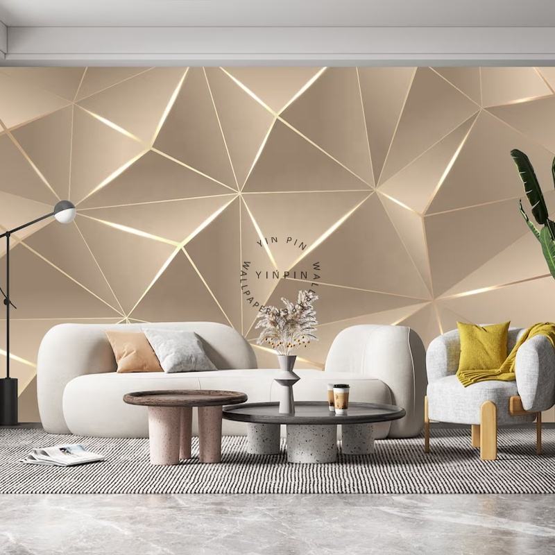 Papier peint de couleur claire polygonale plan géométrique contour doré mural