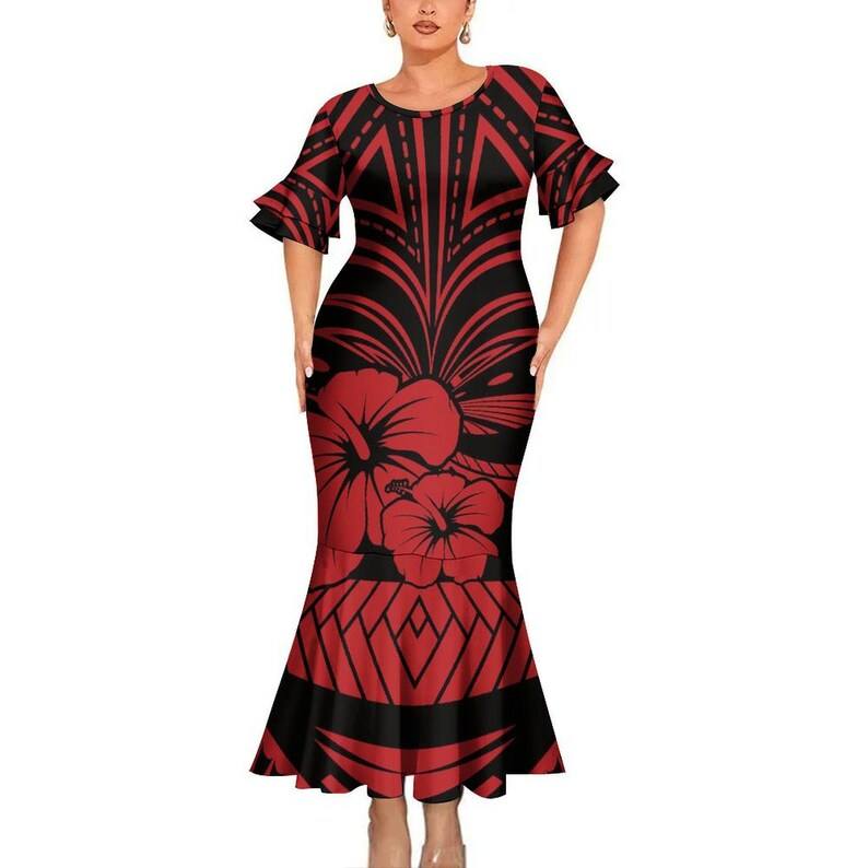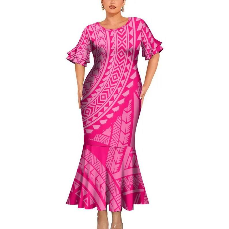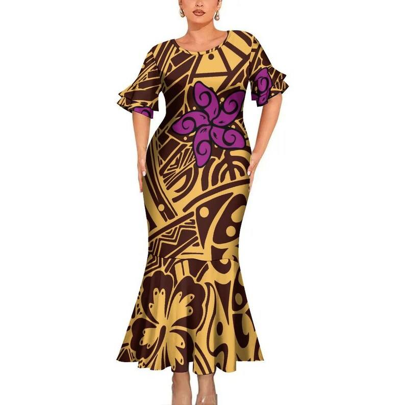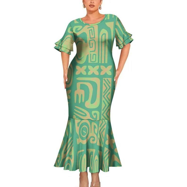 Polynesia Island Style Dress Women Elegant Maxi Long Fishtail Dress New Arrival 2024 Custom Designed Double Layered Ruffles