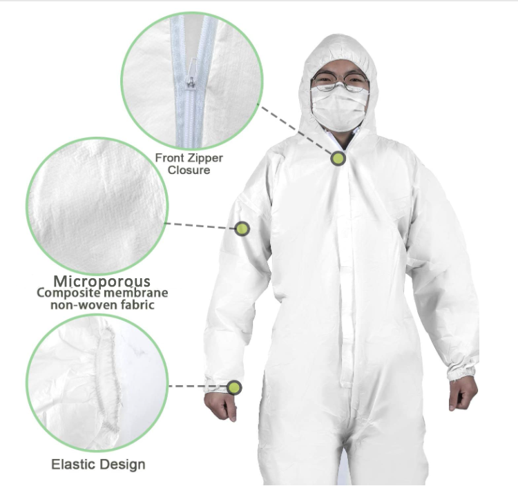 Combinaison en polypropylène avec microporeux imperméable antipoussière de purification tissu Isolé vêtements capuche costume salopette pour hommes