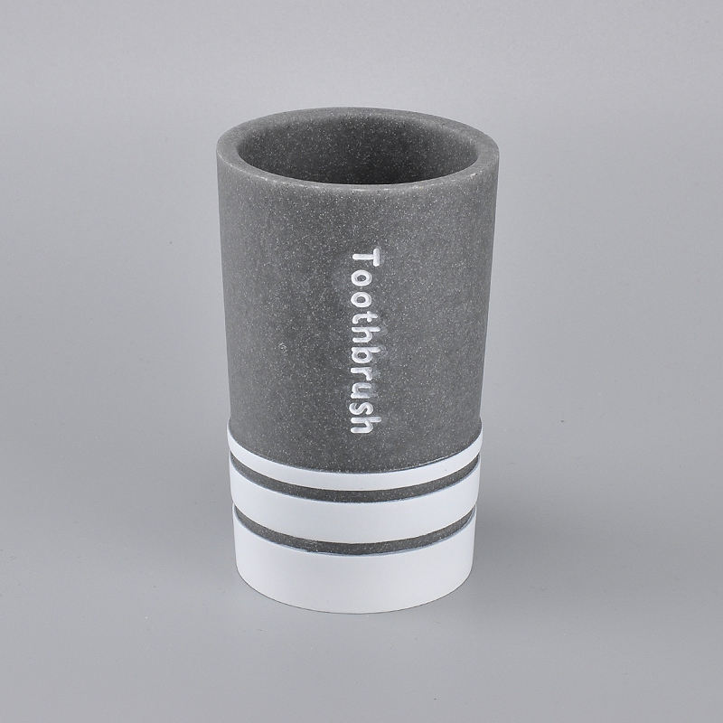 Polyresin Eco-Friendly White/Yellow Modern Round Cylinder Shape Toothbrush Holder Stand