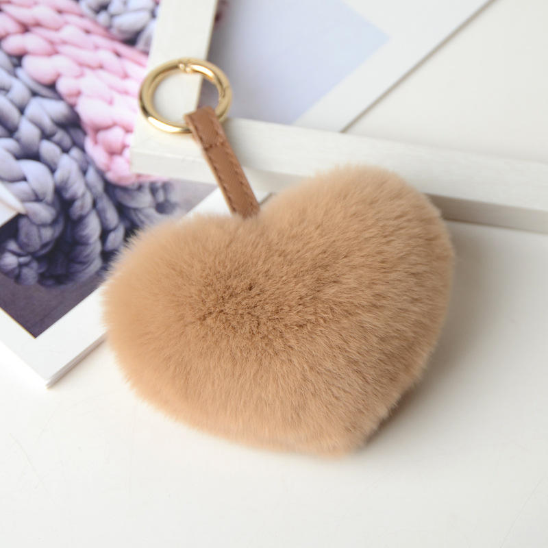 Pom Pom porte-clés sac breloque pour filles femme dame en forme de coeur mignon fourrure peluche Faux porte-clés