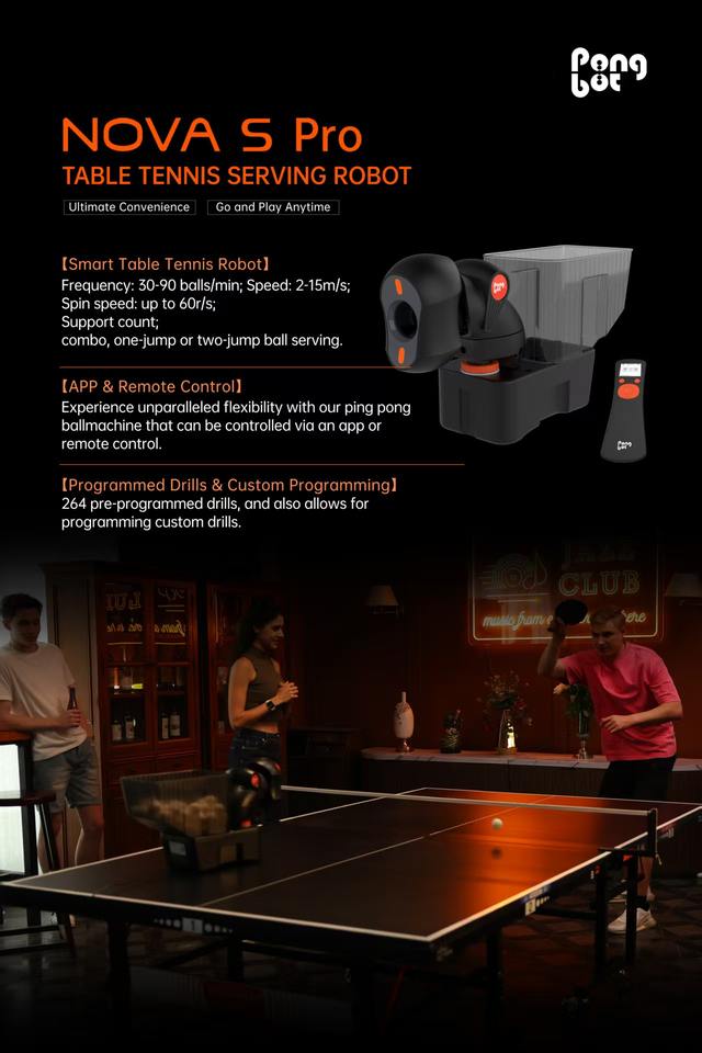 Robot de tennis de table Pongbot Nova S Pro Multi-Rotation & Multi-Drop Télécommande Machine à balles de ping-pong Produit d'entraînement
