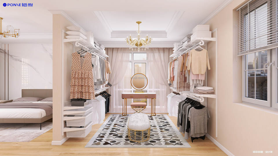 Ponie personnalisé belle promenade en métal dans la garde-robe L en forme de U mur vestiaire garde-robe en métal