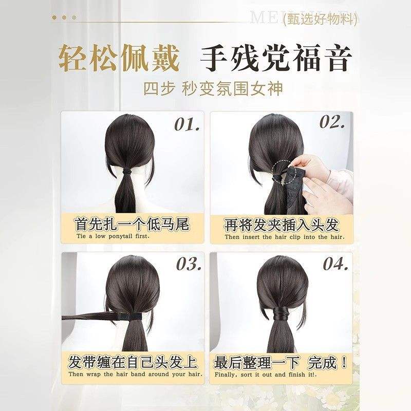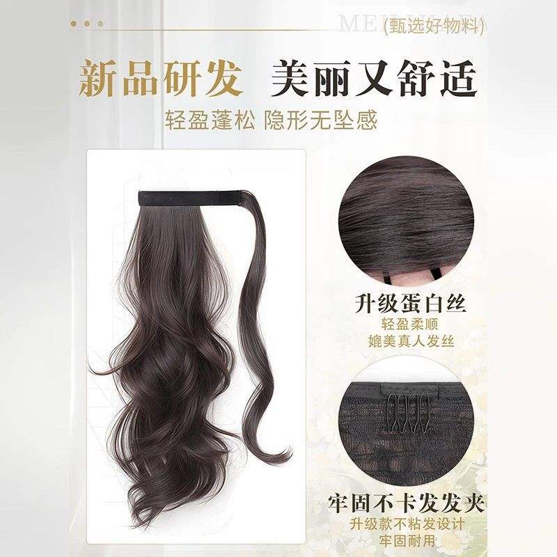 Perruque queue de cheval pour femme, volume élevé, naturelle et moelleuse, queue de cheval basse avec extension de cheveux tressée auto-enroulante à velcro