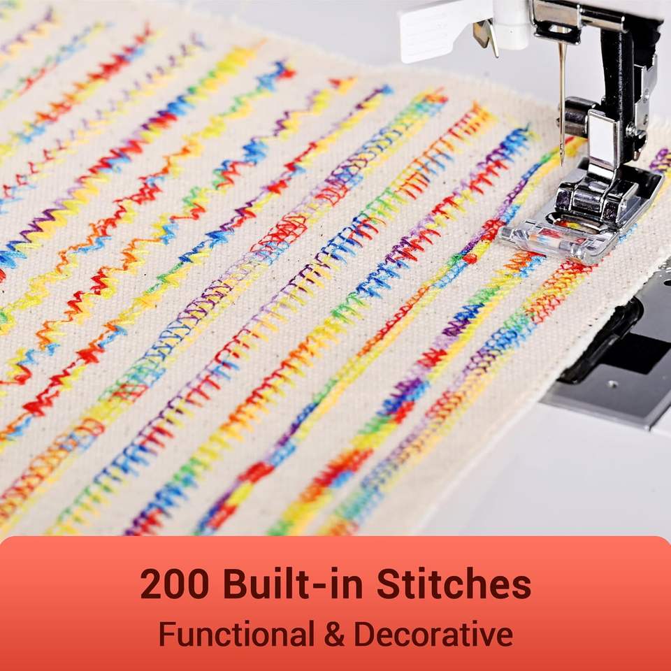PooLin EOC02 Computerized Sewing Machine 200 Stitches LCD Screen Wide Table 7 Presser Feet Quilting Auto Needle Threader