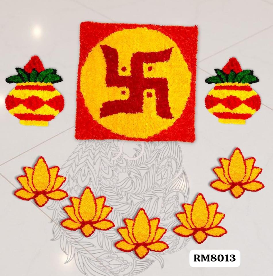 Ensemble de tapis Pooja Rangoli, Swastik Chaurang Aasan Kalash, tapis fleuris pour la décoration du temple, lavables, réutilisables, décoration de la maison