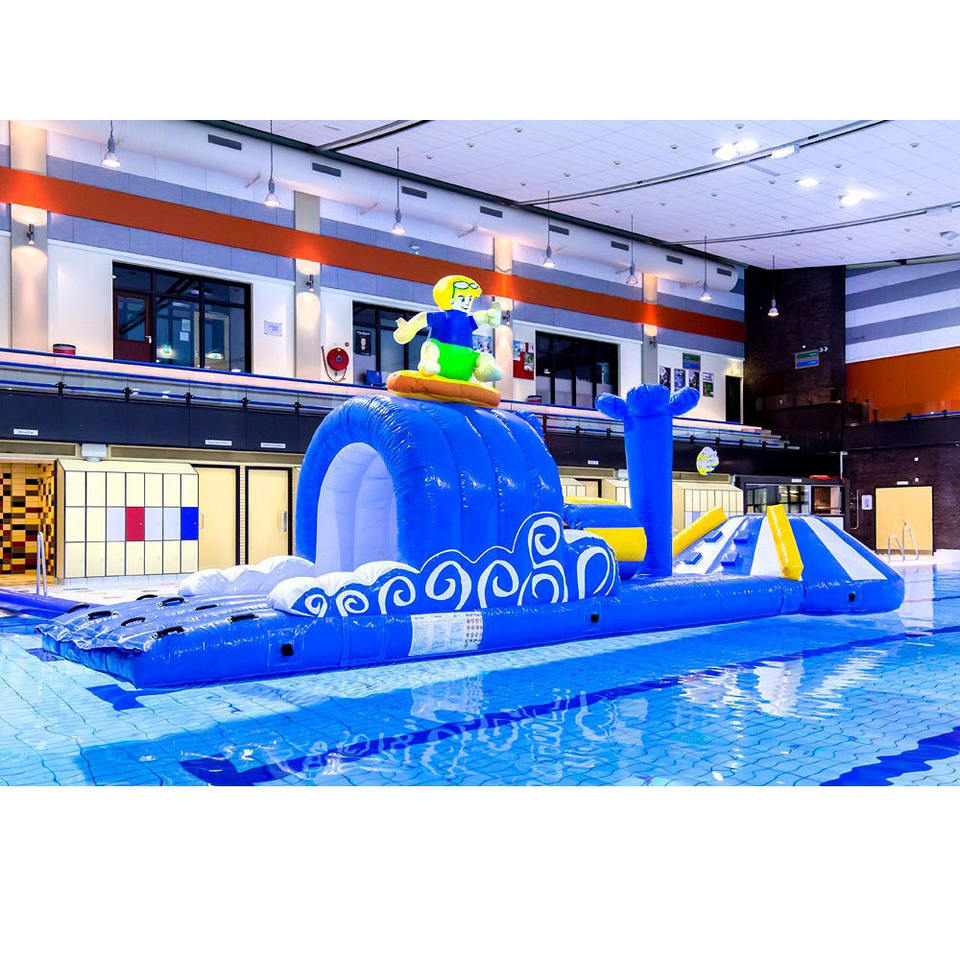 Parcours de course aquatique gonflable avec toboggan, piste d'aventure gonflable haute capacité pour piscines et centres de villégiature