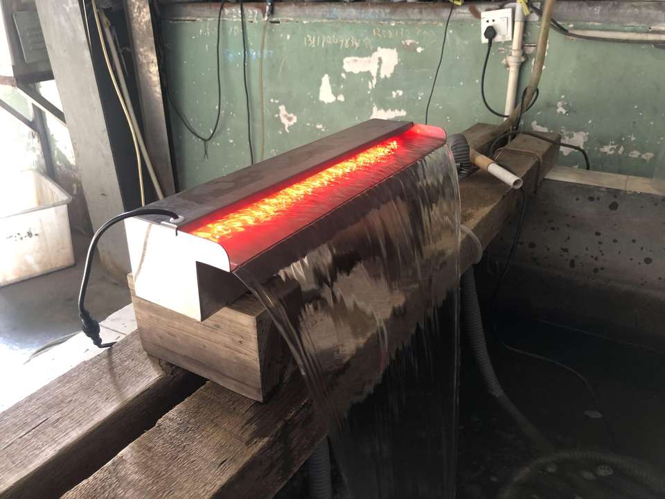 Fontaine de piscine en acier inoxydable avec cascade et lumières LED - Bande LED de 11,8 pouces avec télécommande et 18 couleurs pour jardin, terrasse et étang