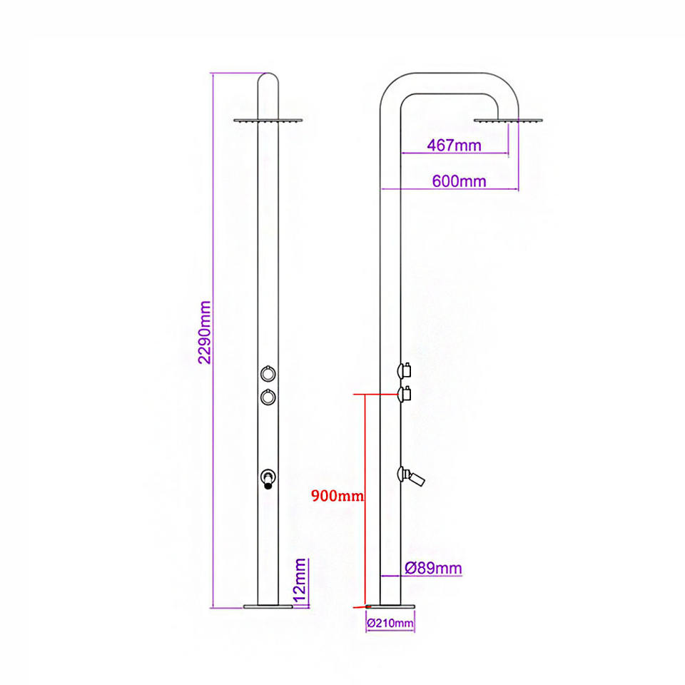 Nom du produit:Support de douche extérieure en acier inoxydable, douche de piscine