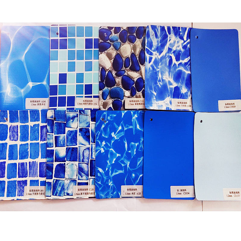 Membrane de revêtement de piscine en PVC imperméable 1,2 mm/1,5 mm/2 mm renforcée bleu océan pour petites piscines, piscines à billes, piscines de natation et piscines de volley-ball