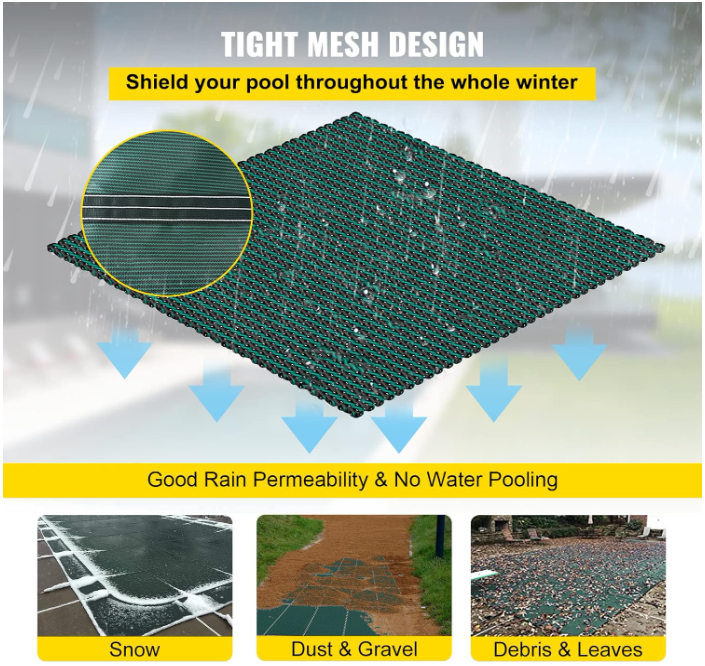 Couverture de sécurité pour piscine rectangulaire, couverture d'hiver pour piscine, triple couture, maille haute résistance, matériau PP avec bonne perméabilité à la pluie