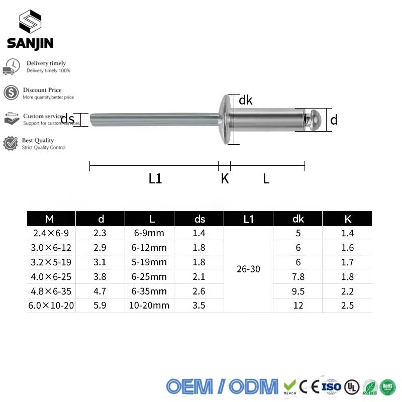Rivets Pop en aluminium M2.4 M3.2 M4 M4.8 à tête dôme aveugle en acier avec mandrin pour accessoires d'échappement de moto et profilés en aluminium