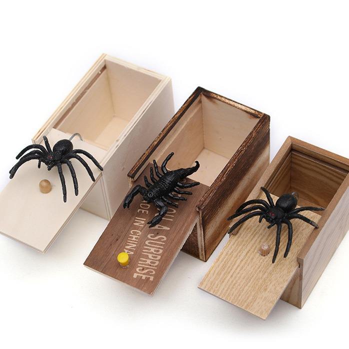 Pop Out caoutchouc araignée peur blague boîte amusant Surprise Gadgets artisanat fait à la main blague jouets en bois tour boîte pour adultes enfants