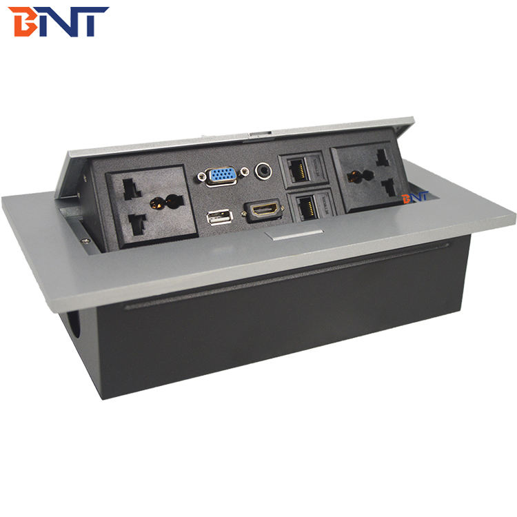 Prise de courant multimédia escamotable pour table de réunion, courant nominal 16A, 2 prises AC