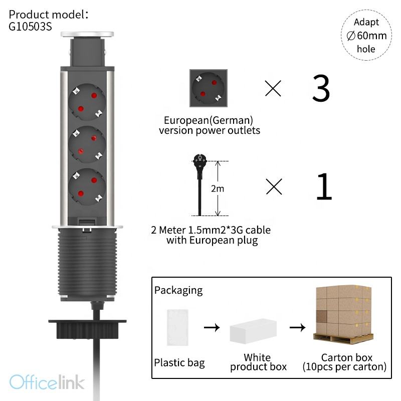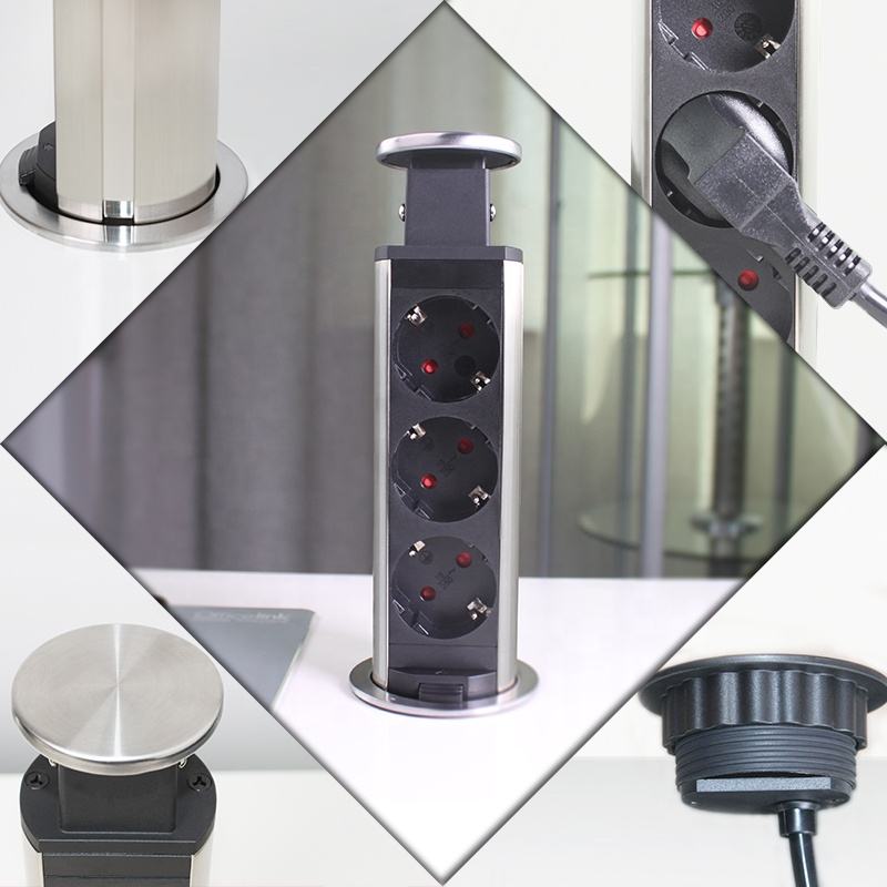 Barre d'alimentation Pop-up avec prise Schuko, pour bureau