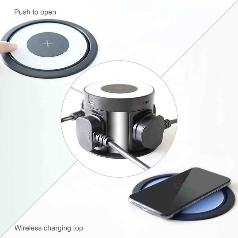 Prise escamotable avec chargeur USB Type C et chargeur sans fil