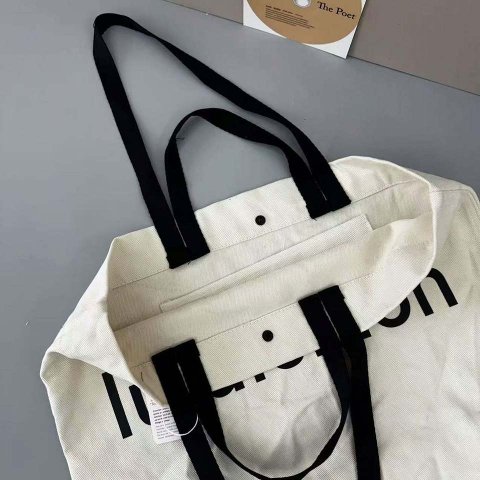 Sac fourre-tout en toile de coton réutilisable personnalisé avec logo Popula, poignées longues en ruban, motif lettres, taille moyenne, pour le shopping