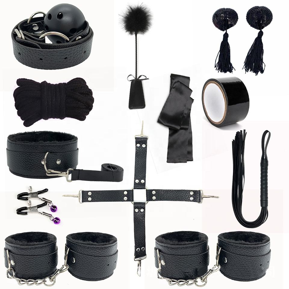 Kits fétichistes populaires de 12 pièces, attaches de lit, bondage en peluche PU, jouets sexy pour flirter, jeux alternatifs, ensemble de bondage BDSM, bondage fétiche
