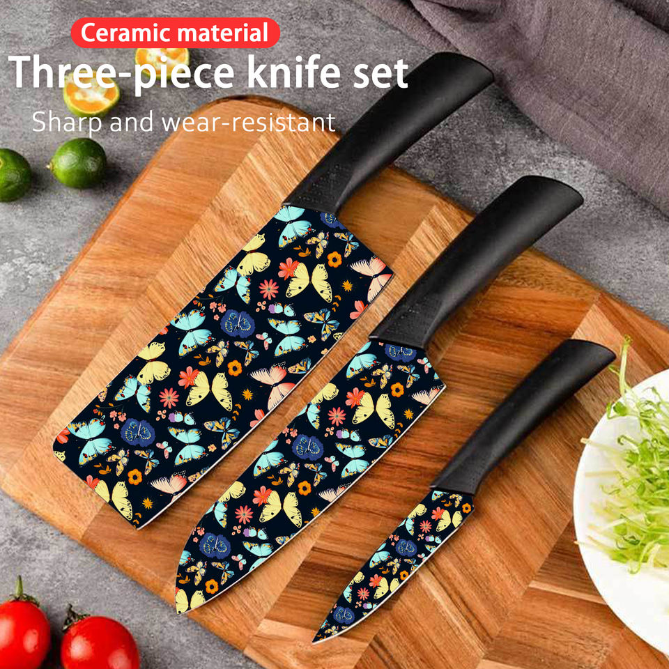 Couteaux de chef en céramique populaires, 2 ensembles, manche en plastique personnalisé, lavables au lave-vaisselle, écologiques, prix d'usine, services d'exécution des commandes Shopify