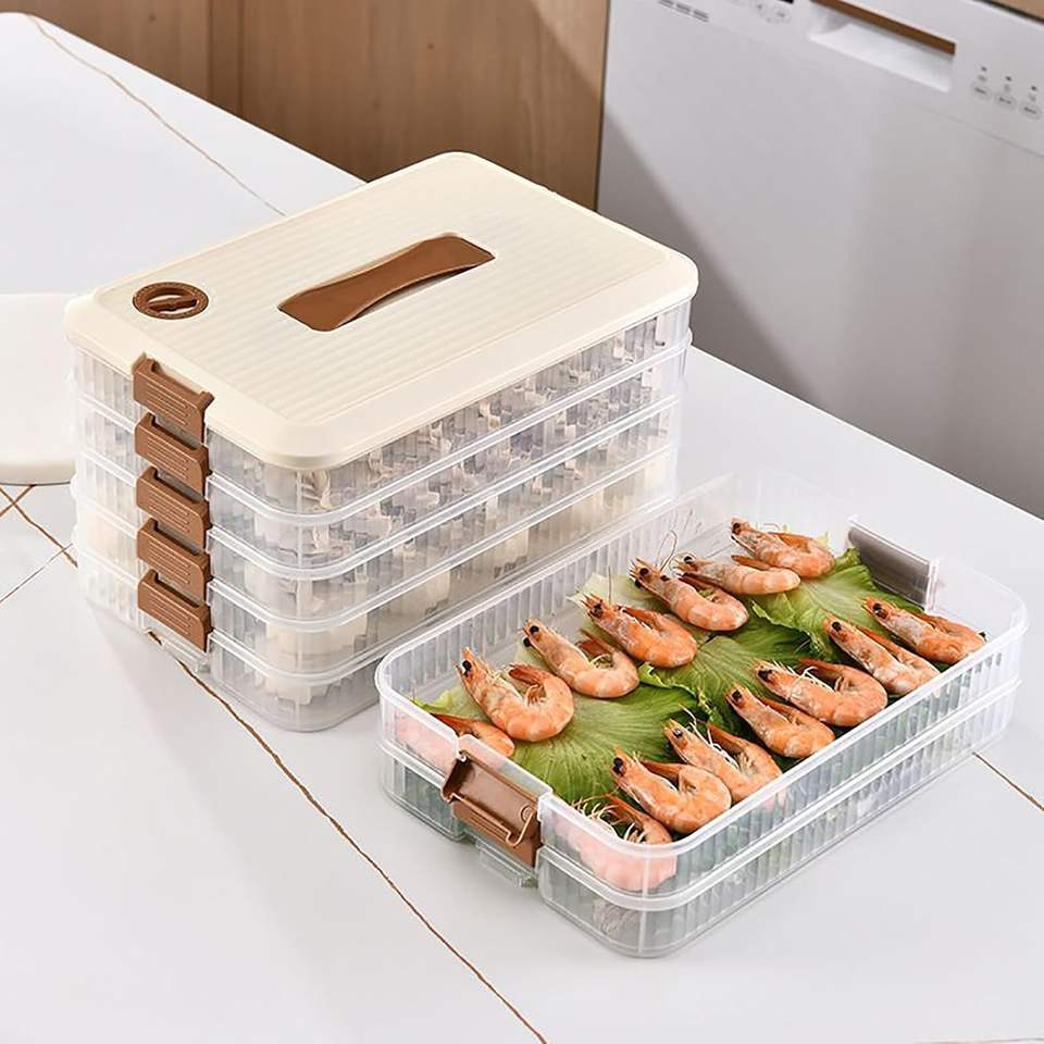 Boîte de conservation alimentaire populaire à 5 couches avec minuterie, empilable, pour dumplings, congélateur, accessoires de cuisine